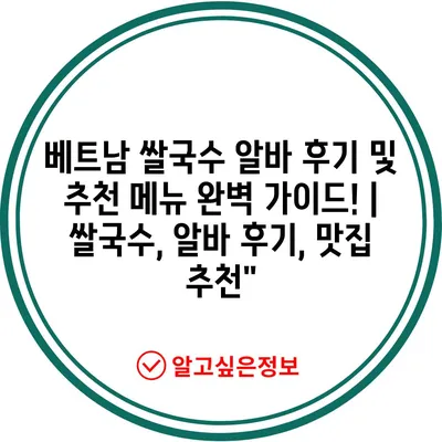 미분당 베트남 쌀국수 알바 후기와 꿀팁| 성공적인 아르바이트를 위한 메뉴 추천 및 경험담 | 베트남 쌀국수, 아르바이트 후기, 꿀팁”